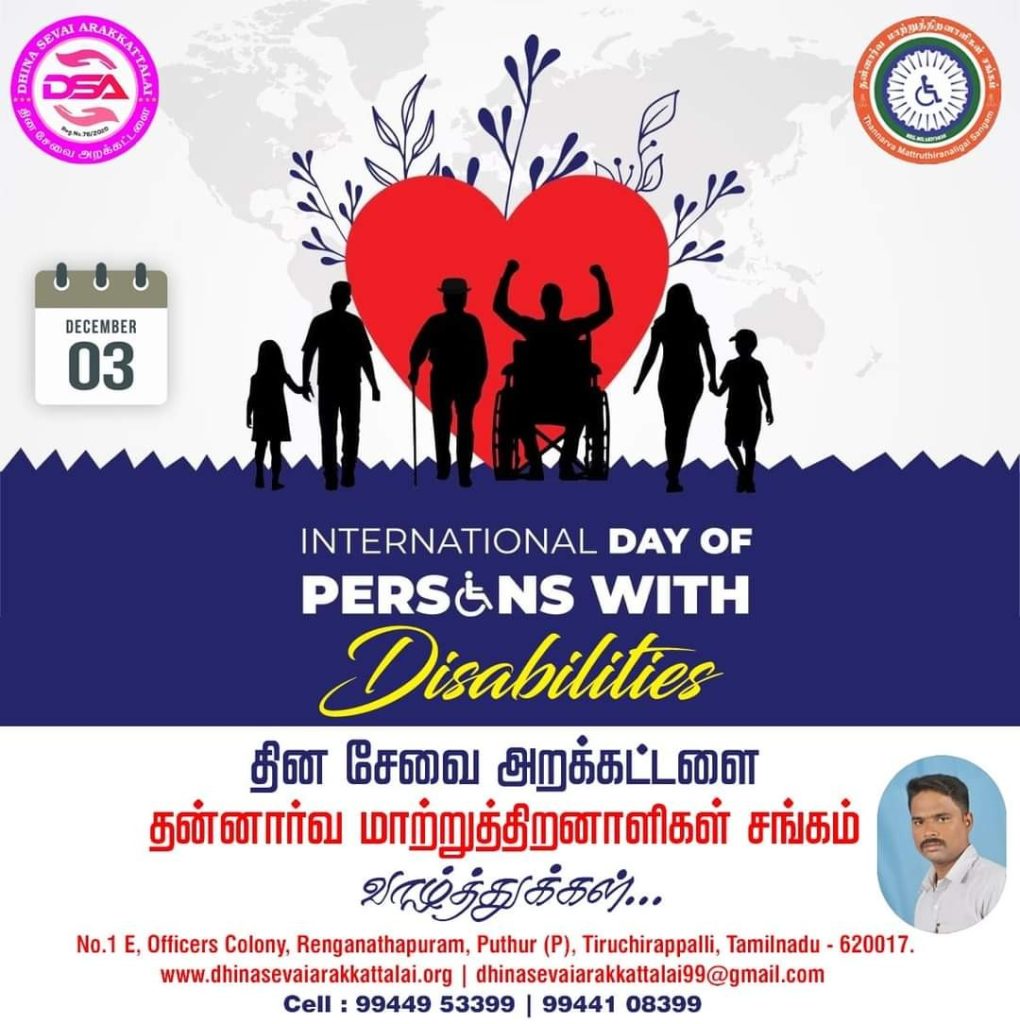 இன்று 03.12.2024 உலக மாற்றுத்திறனாளி தினத்தை முன்னிட்டு, டாஸ் அறக்கட்டளை, தன்னார்வ மாற்றுத்திறனாளிகள் சங்கம் மற்றும் தின சேவை அறக்கட்டளை சார்பாக அண்ணா விளையாட்டு அரங்கில் மரம் நடும் விழா நடைபெற்றது.