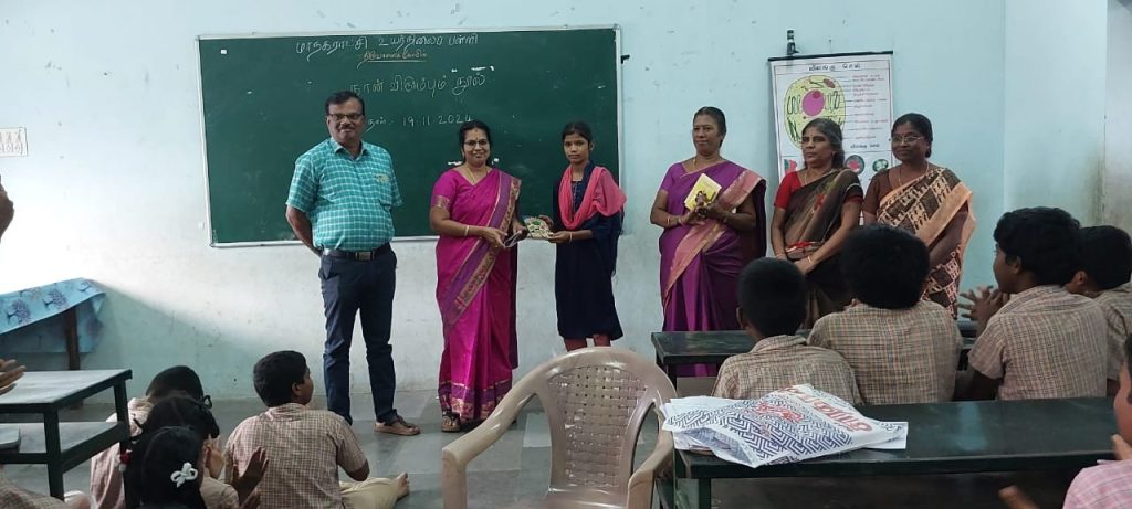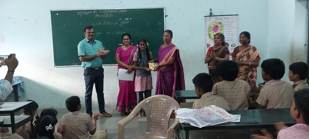 பள்ளி மேலாண்மை குழு (கல்வியாளர்) உறுப்பினரும் திருவானைக்காவல் அரசு கிளை நூலக வாசகர் வட்ட தலைவருமான வி.வே. விஸ்வேஸ்வரன் அவர்கள் முன்னிலை வகித்தார்.