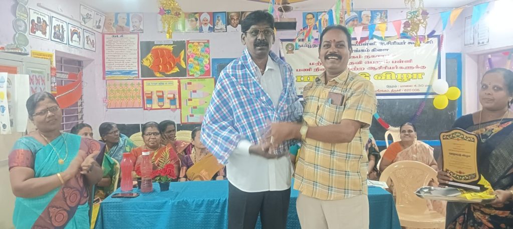 தமிழ்நாடு தொடக்கப்பள்ளி ஆசிரியர் கூட்டணி, ஸ்ரீரங்கம் கிளை, ஸ்ரீரங்கம் நகராட்சி மற்றும் உதவி பெறும் பள்ளி பணி நிறைவு பெற்ற ஆசிரியர்களுக்கு பாராட்டு
