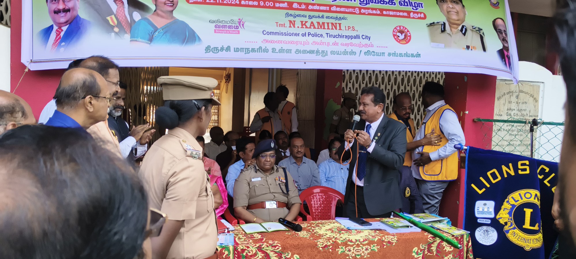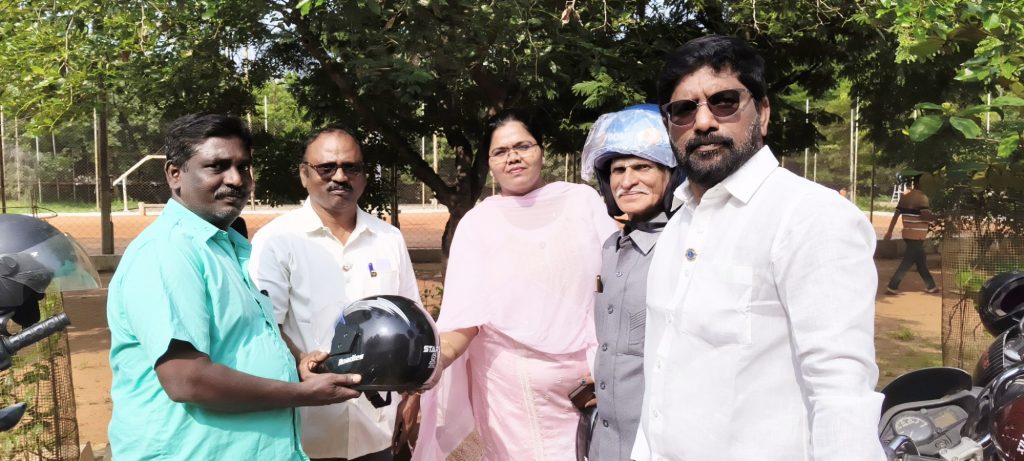 திருச்சியில் உள்ள அரிமா சங்கங்களின் நிர்வாகிகள் மற்றும் உறுப்பினர்கள் கலந்து கொண்டு விலையில்லா தலைக்கவசம் வழங்கினார்கள்.