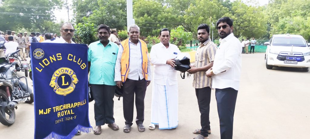உயிர் காக்கும் உயரிய திட்டமான இலவச தலைக்கவசம் வழங்கும் நிகழ்வில் திருச்சிராப்பள்ளி ராயல் லயன்ஸ் சங்கத்தின் நிர்வாகிகள் கலந்து கொண்டு விலையில்லா தலைக்கவசம் வழங்கினார்கள்.