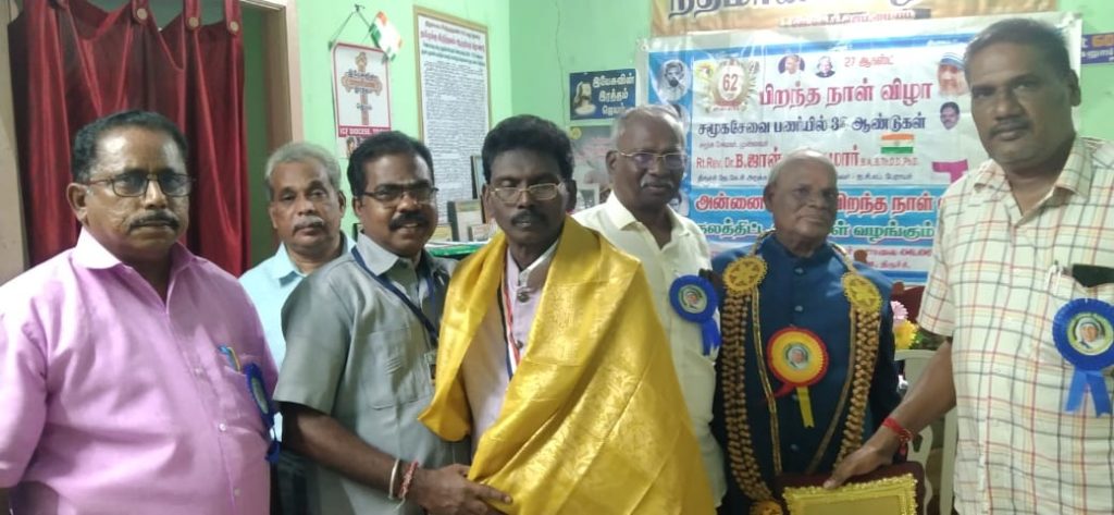அன்னை தெரசா விருது-2025, விருதாளர் பேராசிரியர் டாக்டர் மீ.சந்திரசேகரன், திருச்சி. 27-8-2025 அன்று JKC Trust நடத்திய அன்னை தெரசா பிறந்தநாள் விழாவில்!