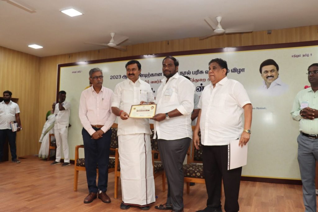 தமிழ்மொழியில் சிறந்த நூல்கள் வெளிவருவதை ஊக்கப்படுத்தும் வகையில் தமிழ் வளர்ச்சித்துறை சார்பில், 2023 ஆம் ஆண்டுக்கான சிறந்த நூலுக்கு பரிசு வழங்கும் விழா, 07.02.2025 அன்று சென்னையில் உள்ள தமிழ்நாடு இசை மற்றும் கவின் பல்கலைக்கழக அரங்கில் நேற்று நடைபெற்றது.