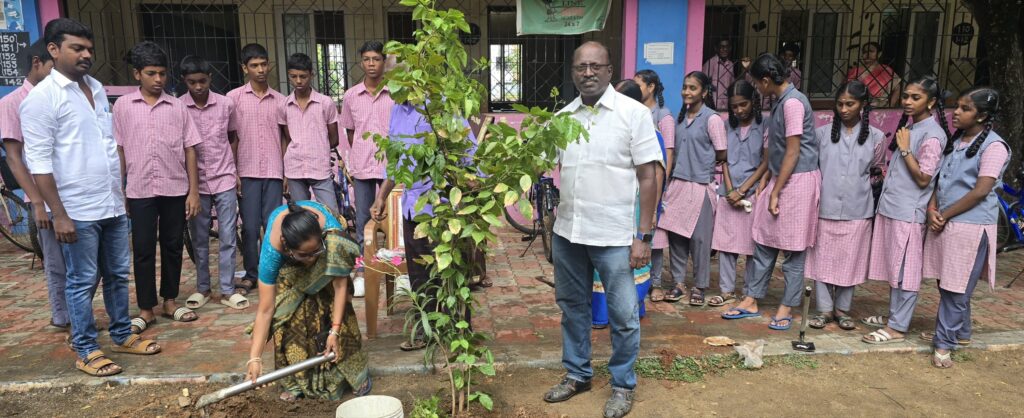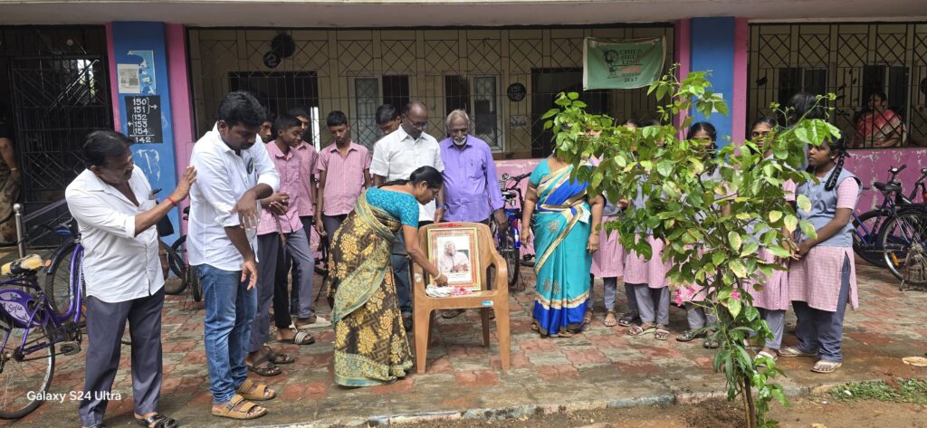அவரை நினைவுகூர்வது என்றால், நம் சூழலை பசுமையாக்குவதே சிறந்த மரியாதையாகும்,” என்ற வகையில் பள்ளி மாணவ, மாணவியர், ஆசிரியர்கள் மற்றும் இயக்க உறுப்பினர்கள் கலந்து கொண்டு, பள்ளி வளாகத்தில் மரக்கன்றுகளை நட்டனர்.