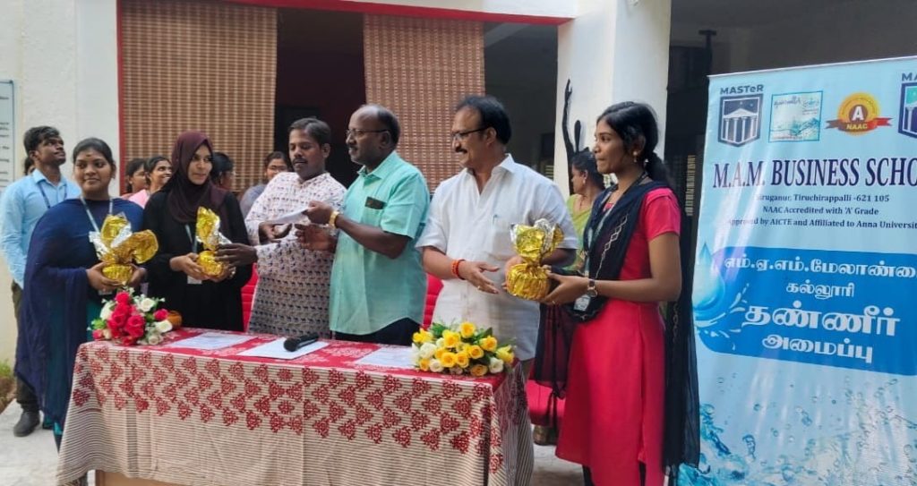 “சுற்றுச்சூழலுக்கு உகந்த விநாயகர் உருவாக்கப் போட்டி” எம்.ஏ.எம். மேலாண்மை கல்லூரி , திருச்சி அதன் உள்துறை தர உறுதி குழு மற்றும் தண்ணீர் சுற்றுச்சூழல் மாணவர் மன்றம் இணைந்து விநாயகர் சதுர்த்தியை முன்னிட்டு சுற்றுச்சூழலுக்கு உகந்த விநாயகர் உருவாக்கப் போட்டியை நடத்தியது. எம்.ஏ.எம். மேலாண்மை கல்லூரி இயக்குனர் முனைவர். எம். ஹேமலதா அவர்கள் தொடங்கி வைத்து, மாணவர்கள் இயற்கை சார்ந்த வாழ்க்கையை பின்பற்றி, சமூக பொறுப்புணர்வை வளர்க்கும் வகையில் இத்தகைய நிகழ்ச்சிகளில் ஆர்வமாக கலந்துகொள்ள வேண்டும் என ஊக்கமளித்தார்.