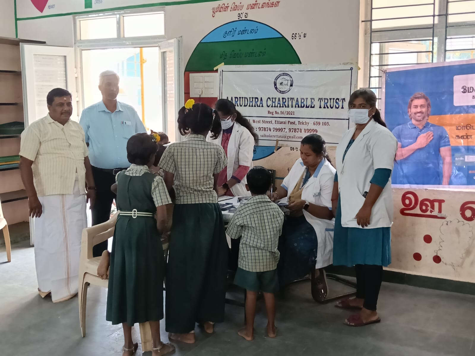 இன்று 23-01-2026 திருச்சி மாவட்டம் திருவரங்கம் வட்டம் எட்டரை ஊராட்சி ஒன்றியம் தொடக்க பள்ளி மாணவ மாணவிகளுக்கு இலவச கண் சிகிச்சை முகாம் திருச்சி மேக்ஸி விஷன் கண் மருத்துவமனை மற்றும் ஆருத்ரா சாரிட்டபில் ட்ரஸ்ட் சார்பாக நடத்தப்பட்டது இம்முகாமில் 200 மாணவ மாணவியர் கண் பரிசோதனை செய்யப்பட்டு 30 மாணவ மாணவியர்களுக்கு கண்களில் உள்ள குறைபாடு கண்டறிய பட்டு மருத்துவமனைக்கு வருவதற்கு பரிந்துரை செய்யப்பட்டது இம் முகாம் சிறப்பாக நடைபெற உறுதுணையாக இருந்த பள்ளியின் தலைமை ஆசிரியர் மற்றும் ஆசிரியர்கள் மற்றும் திருச்சி மேக்ஸி விஷன் கண் மருத்துவமனை மருத்துவர்கள் மற்றும் செவிலியர்கள் அனைவருக்கும் கோடான கோடி நன்றிகள்
