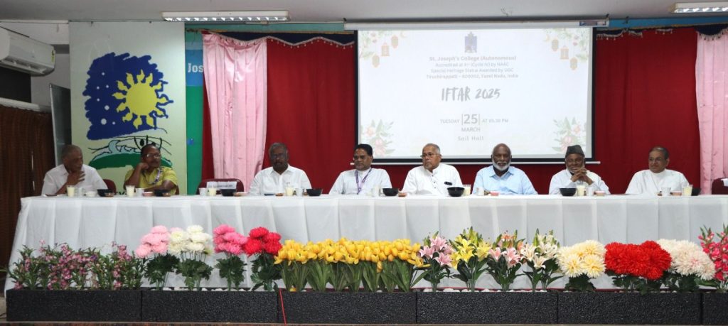 திருச்சி செயின்ட் ஜோசப் கல்லூரியில் இப்தார் நோன்பு திறக்கும் நிகழ்ச்சி மார்ச் 25 2025 மாலை அளவில் நடைபெற்றது.