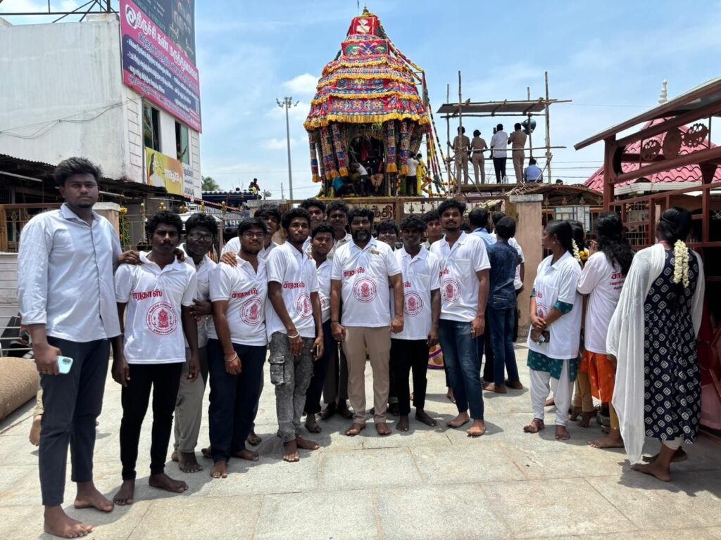 அருள்மிகு சமயபுரம் மாரியம்மன் கோவிலுக்கு வருகை தந்த அனைத்துதரப்பு பக்தர்களுக்கு குடிநீர் வழங்குதல், கூட்ட நெரிசலை சீர்படுத்துதல், குழந்தைகளுக்கு பிஸ்கட் வழங்குதல், மற்றும் அன்னதானம் வழங்குதல் போன்ற தன்னார்வல சேவைகள் செய்து அனைவரின் பாராட்டுகளையும் பெற்றனர்.