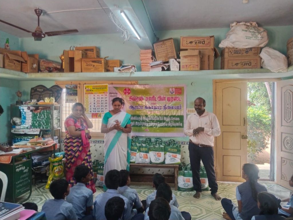 இதில் கருப்பு உளுந்து கருப்பு கொண்டை கடலை பச்ச பயிறு முந்திரி பருப்பு மற்றும் பாதாம் பருப்பு வழங்கப்பட்டது. மாணவர்கள் இதனைப் பெற்றுக் கொண்டு எங்களுக்கு மிகவும் பயனுள்ளதாக இருந்தது என்று கூறி சில்ட்ரன் சாரிடபிள் டிரஸ்ட் க்கு நன்றி கூறினார்கள்.
