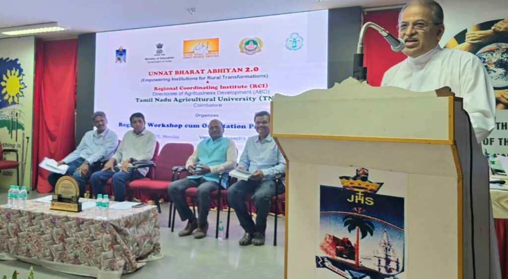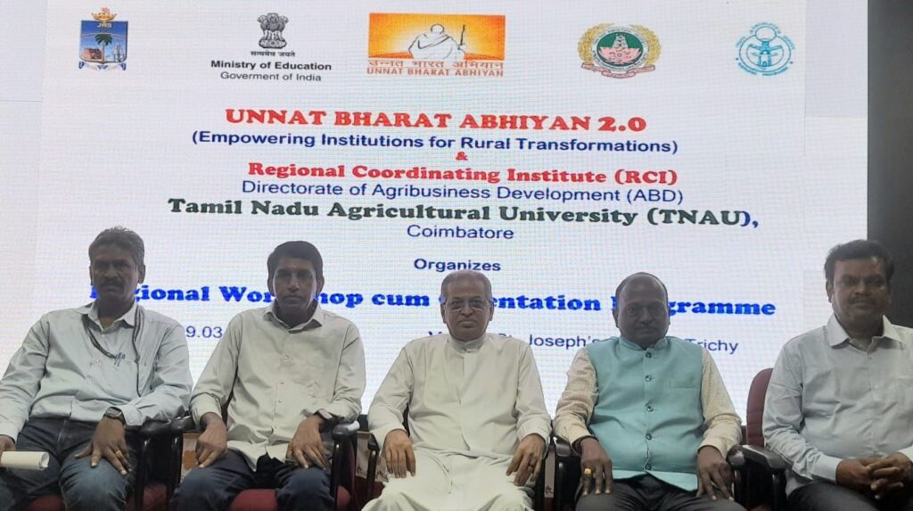 உன்னத் பாரத் அபியான் (UBA) திட்டத்தின் கீழ் தமிழக மண்டல ஒருங்கிணைப்பு மையமான கோயம்புத்தூர் தமிழ்நாடு வேளாண்மைப் பல்கலைக்கழகத்தின் சார்பில் உயர்கல்வி நிறுவனங்களுக்கான ஒரு நாள் புத்தாக்கப் பயிற்சி பட்டறை திருச்சி செயின்ட் ஜோசப் தன்னாட்சிக் கல்லூரியில் நடைபெற்றது.