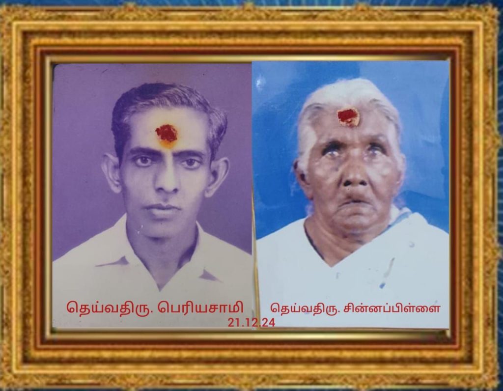 • இன்று திரு. சதாசிவம் அவர்களின் பெற்றோர் தெய்வத்திரு. பெரியசாமி, தெய்வத்திரு. சின்ன பிள்ளை அவர்களின் நினைவு தினத்தை முன்னிட்டு குடும்பத்தார்கள் சார்பாக அன்னதானம் அன்பர்களுக்கு வழங்கப்பட்டது.