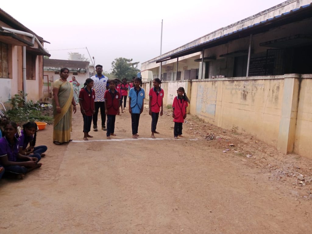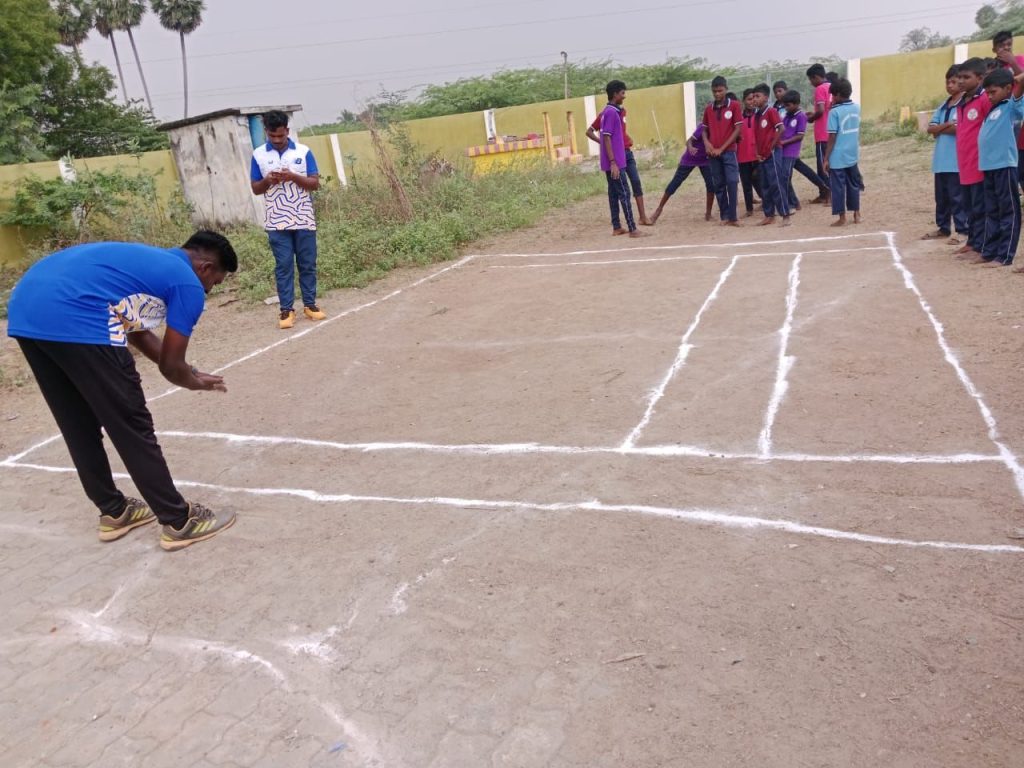 விளையாட்டுப்போட்டி காரைக்குடி அழகப்பா பல்கலைக்கழக உடற்கல்வியியல் கல்லூரி பயிலும் மூன்று பயிற்சி ஆசிரியர்கள், போட்டிகளை நடத்த உதவினர்.