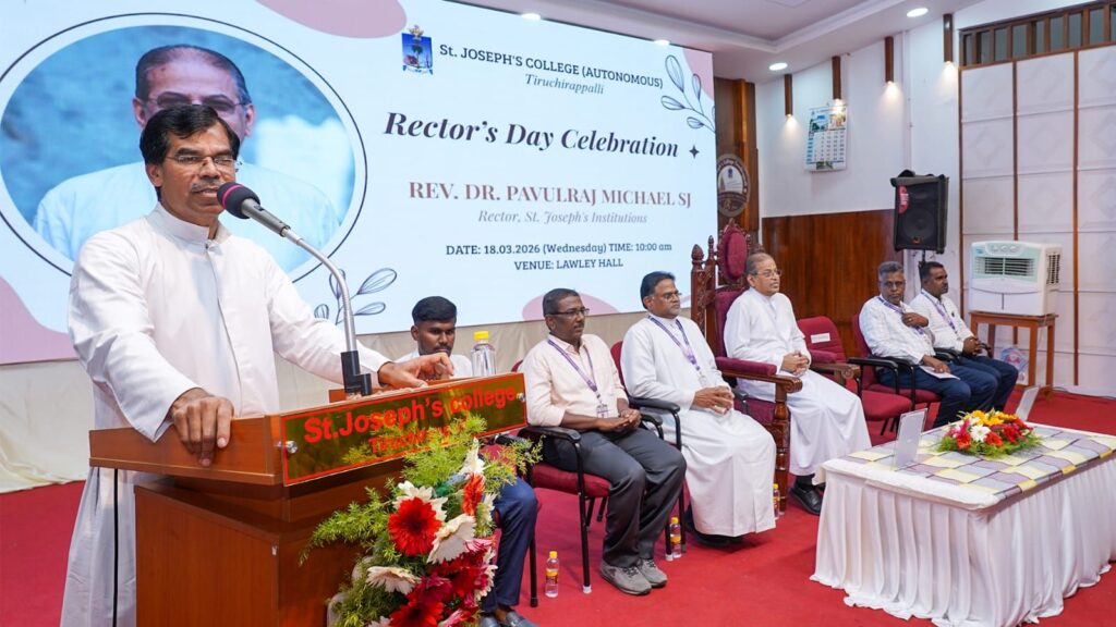 திருச்சி செயின்ட் ஜோசப் கல்லூரியில் அதிபர் தினக் கொண்டாட்டம் சிறப்பாக நடைபெற்றது. கல்லூரி அதிபர் அருள்முனைவர் பவுல்ராஜ் மைக்கேல், சே.ச. கடந்த மூன்று ஆண்டுகளாக கல்லூரியை திறம்பட நடத்தி வருகிறார். அவரையும் அவர் சார்ந்த இயேசு சபை குடும்பத்தையும் பாராட்டும் விதமாக கல்லூரிப் பாரம்பரியத்தின் அடிப்படையில் அதிபர் தின விழா மிகச் சிறப்பாக கொண்டாடப்பட்டது. கல்லூரி அதிபர் மற்றும் அருள்தந்தையர்களை பேராசிரியர்கள், அலுவலகப் பணியாளர்கள், மாணவ பேரவை உறுப்பினர்கள் ஆகியோர் வரவேற்று அணிவகுத்து அரங்கிற்கு அழைத்து வந்தனர்.