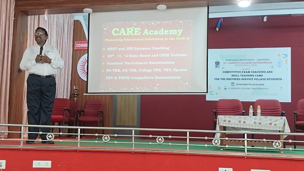 திருச்சி செயின்ட் ஜோசப் தன்னாட்சிக் கல்லூரியின் செப்பர்டு விரிவாக்கத்துறை பணி செய்யும் கிராம மாணாக்கர்களை இலக்காக் கொண்டு போட்டித் தேர்வு பயிற்சி மற்றும் திறன் வளர்ப்புத்திட்ட கோடைகால சிறப்பு பயிற்சியை 09.04.2026 முதல் 19.04.2026 வரை கல்லூரி வளாகத்தில் நடத்தி வருகிறது.
