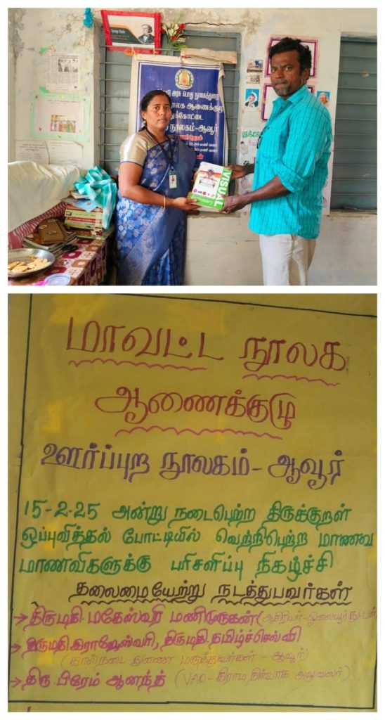 • “ஊர் புற நூலக விழா: மாணவர்கள் வளர்ச்சிக்கு சமூகத்தின் பங்களிப்பு மற்றும் அர்ப்பணிப்பு”.